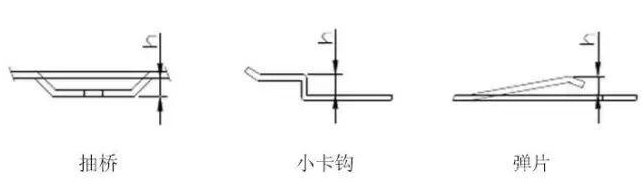 小斷差、小卡鉤、彈片、抽橋等采用折床普通模具無法完成或加工過程較為復雜,此時可設計折床易模來完成加工動作。
