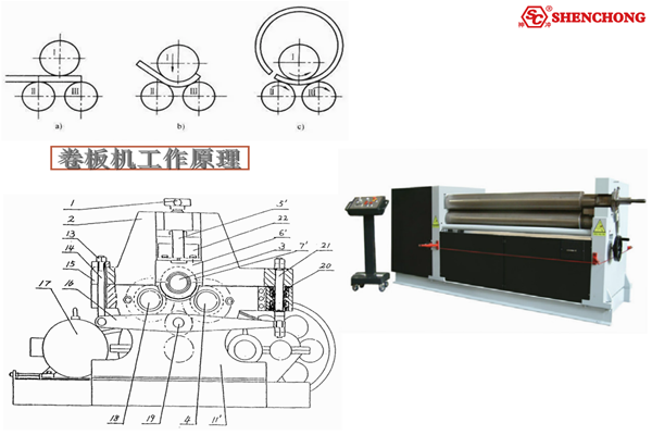 三輥卷板機可將金屬板材卷成圓形、弧形和一定范圍內的錐形工件。因卷板機具有三根工作輥(二根下輥、一根上輥)而稱為三輥卷板機。
