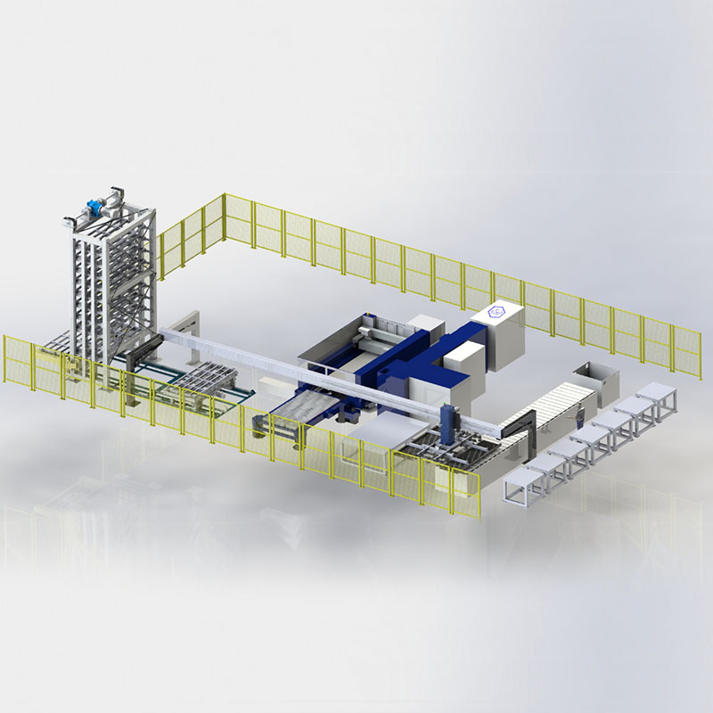 自動化鈑金倉庫雙梁桁架裝卸機激光切割機的組合,實現(xiàn)了倉庫鈑金的自動化裝箱。經(jīng)激光切割機切割后,板材自動卸料、碼垛、再次入庫,實現(xiàn)無人值守生產(chǎn)。