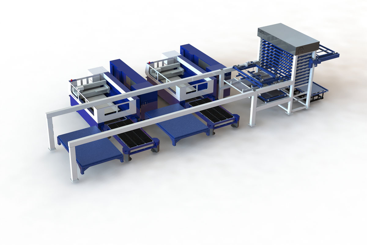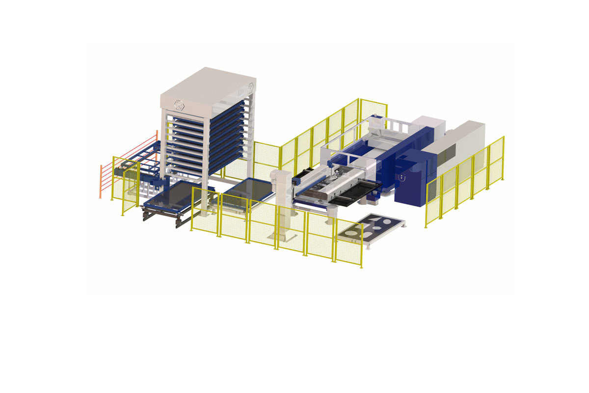 項(xiàng)目方案中鈑金智能料庫(kù)及上下料機(jī)構(gòu)配激光切割機(jī)。