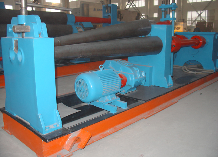三輥卷板機????? 三輥卷板機有機械式和液壓式:機械式三輥卷板機分為對稱和非對稱。???? 機械式三輥對稱式卷