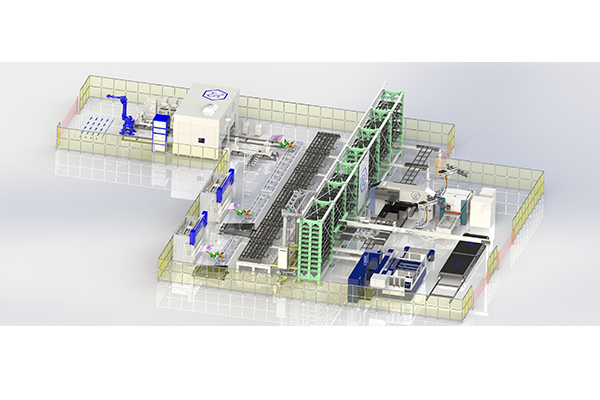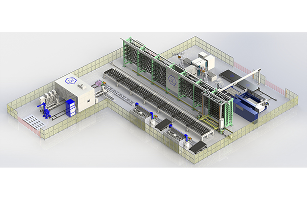 根據(jù)激光機床、沖床的生產(chǎn)計劃,料庫通過運輸小車、自動上下料系統(tǒng),將板材輸送給相應(yīng)機床;